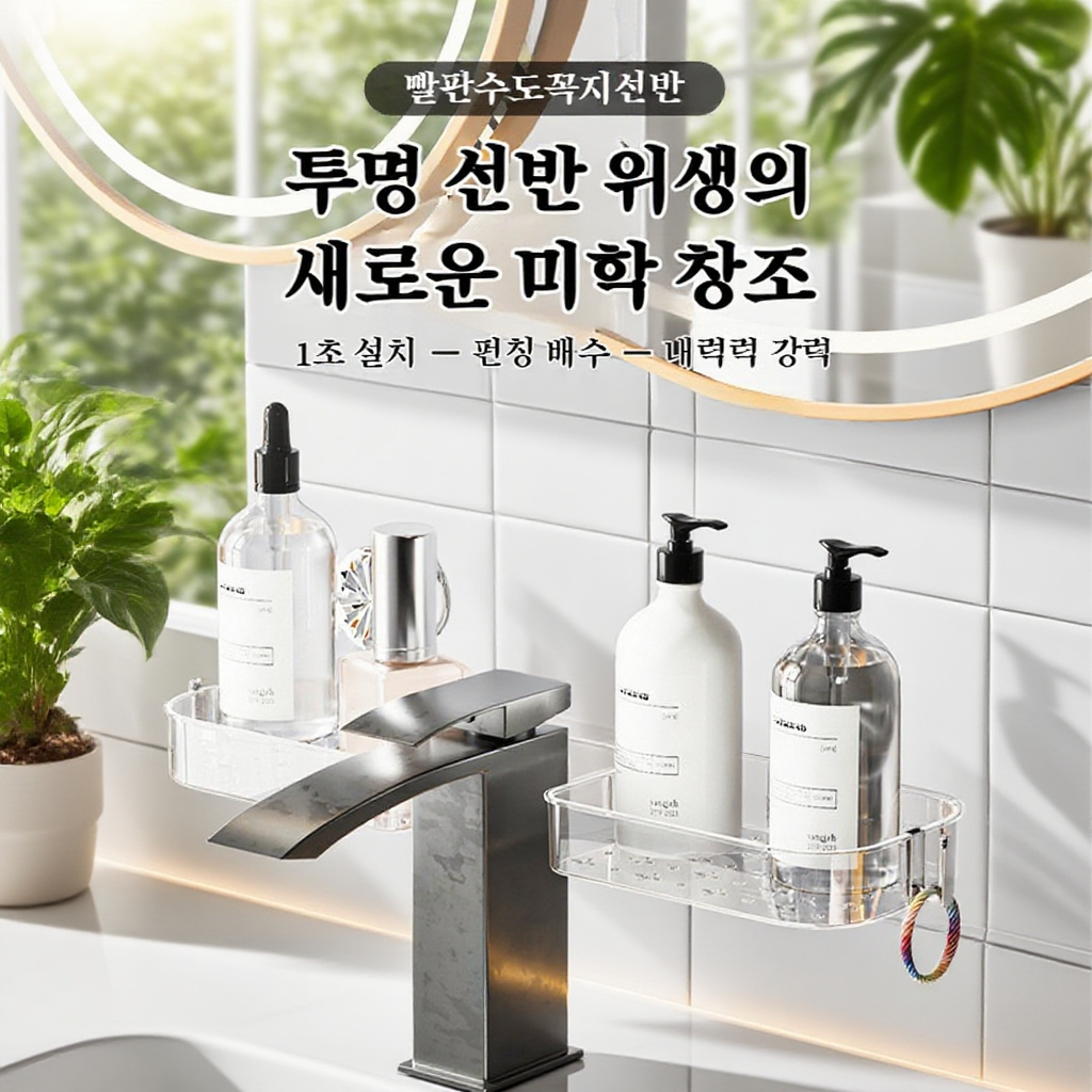 무타공 강력 흡착 U자형 세면대 선반